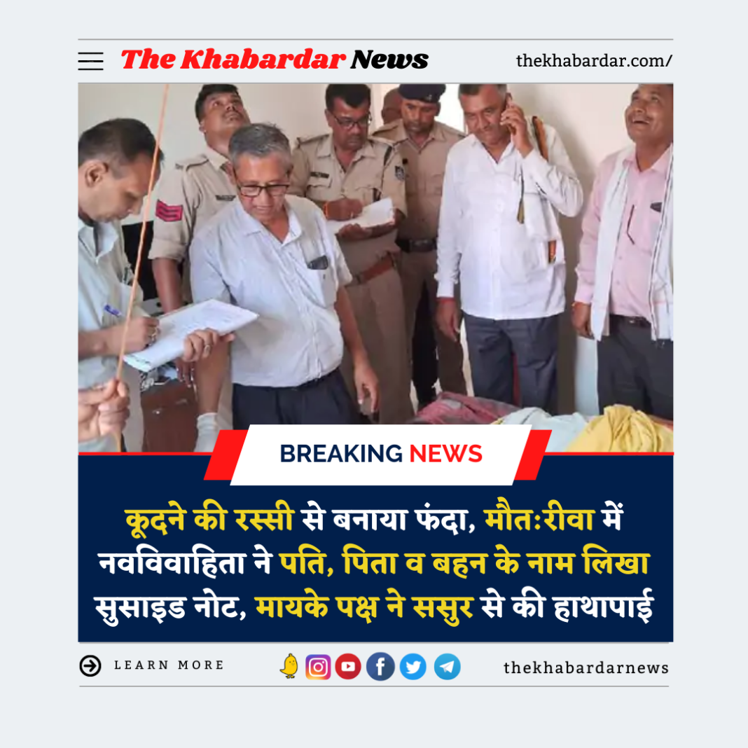 कूदने की रस्सी से बनाया फंदा, मौत:रीवा में नवविवाहिता ने पति, पिता व बहन के नाम लिखा सुसाइड नोट, मायके पक्ष ने ससुर से की हाथापाई