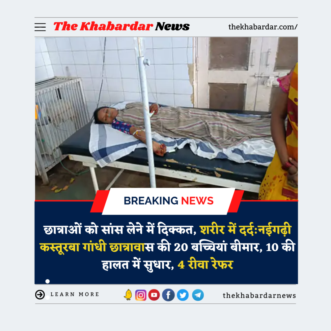 19 अगस्त को सुबह सुधा साकेत पुत्री रघुवीर साकेत उम्र 18 वर्ष निवासी ग्राम चिल्ल की छात्रावास में हालत बिगड़ गई। छात्रावास के जिम्मेदारों ने परिजनों को अवगत कराया। गंभीर हालत में छात्रा को सामुदायिक स्वास्थ्य केंद्र नईगढ़ी में भर्ती कराया। कुछ देर बाद अन्य छात्रों के परिजन भी छात्रावास गए। देखे कि बच्चियां बीमार है। उनको अस्पताल लेकर पहुंची है