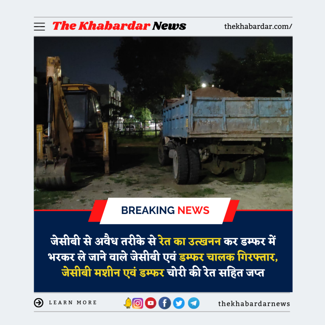 जेसीबी से अवैध तरीके से रेत का उत्खनन कर डम्फर में भरकर ले जाने वाले जेसीबी एवं डम्फर चालक गिरफ्तार, जेसीबी मशीन एवं डम्फर चोरी की रेत सहित जप्त
