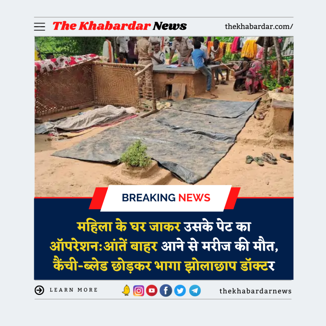 मध्यप्रदेश के नए जिले मऊगंज में एक झोलाछाप डॉक्टर ने महिला मरीज के घर जाकर उसके पेट का ऑपरेशन कर दिया। जिससे उसके गर्भाशय से आंतें बाहर आ गई और उसकी मौत हो गई। जिसके बाद आरोपी डॉक्टर कैंची और ब्लेड वहीं छोड़कर भाग गया। सूचना पर पुलिस और FSL टीम ने मौके पर पहुंची और मामले की जांच शुरू की।