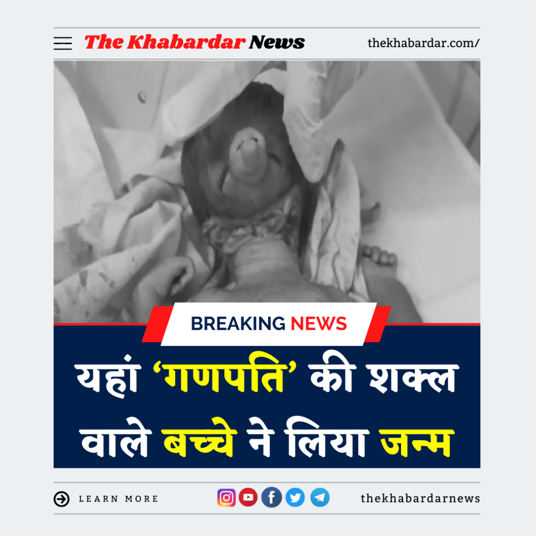 राजस्थान। राजस्थान के जिला अस्पताल से हैरान कर देने वाली खबर सामने आ रही है। दरअसल, यहां दो दिन पहले गणेश भगवान की शक्ल वाले बच्चे ने जन्म लिया। अस्पताल के डॉक्टर और अन्य स्टाफ कर्मचारी भी यह देखकर हैरान हो गए। अस्पताल में खबर फैलते ही लोग बच्चे को देखने के लिए जुटने लगे। हालांकि कुछ मिनट के बाद ही बच्चे ने दम तोड़ दिया।
