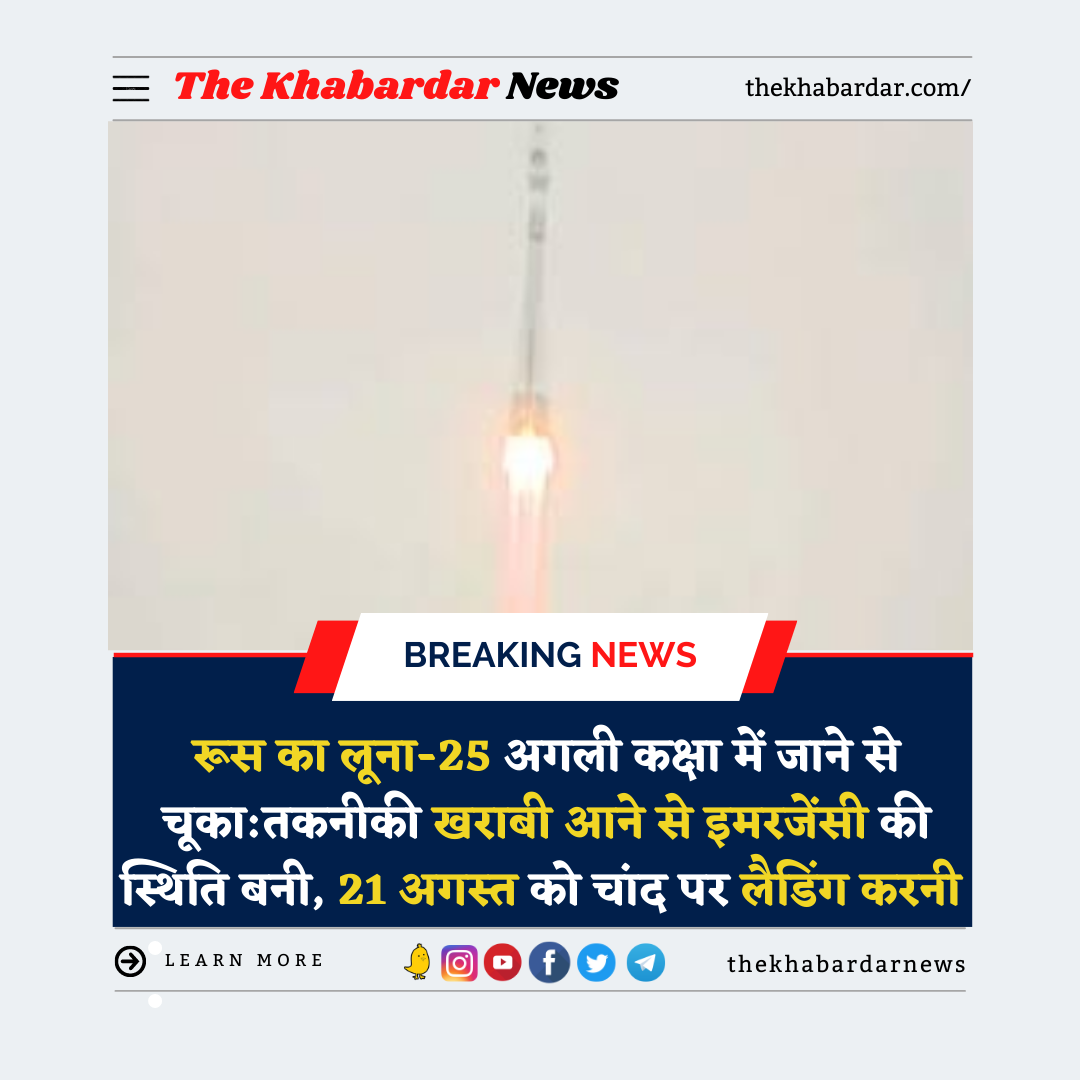 रूसी एजेंसी ने तकनीकी खराबी के बारे में ज्यादा जानकारी शेयर नहीं की है। न्यूज एजेंसी रॉयटर्स के मुताबिक, इमरजेंसी की स्थिति लूना-25 को प्री लैंडिग ऑर्बिट में भेजते वक्त बनी। लूना को 21 अगस्त को चांद पर लैंड करना है।