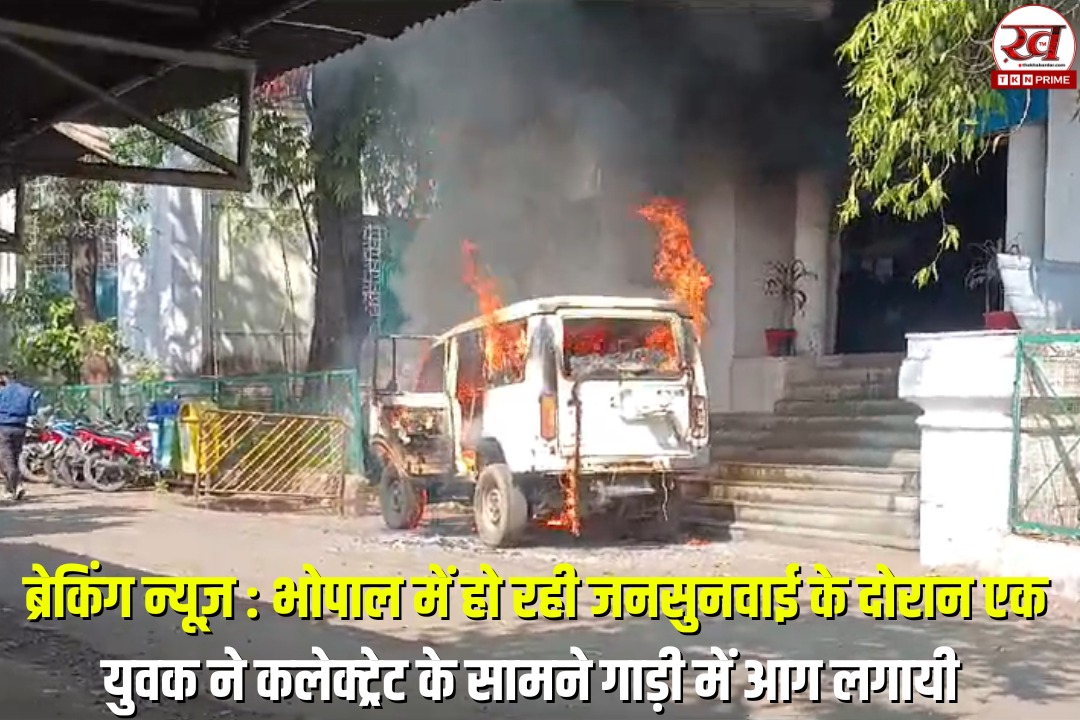 एंकर- इस वक्त की बड़ी खबर मंप्र की राजधानी भोपाल से है जहां कोहेफिजा इलाके में कलेक्ट्रेट आफिस के बाहर खड़ी गाड़ी में युवक ने आग लगा दिया…जी हां वीडियो के जरिए आप देख सकते हैं किस तरीके से ये जो बोलेरो है आग में जलकर खाक हो गई है…बतादें युवक ने जनसुनवाई के दौरान कलेक्ट्रेट आफिस के बाहर खड़ी गाड़ी में आग लगादी है…फिलहाल अटकलें लगाई जा रहीं है की जनसुनवाई न होने के कारण युवक ने इस घटना को अंजाम दिया है….फिलहाल युवक को गिरफतार कर लिया गया है..