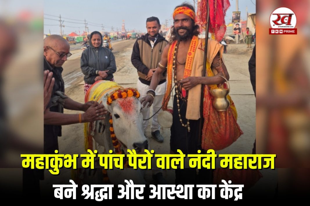 महाकुंभ के इस विशाल आयोजन में इन दिनों एक अद्भुत और चमत्कारी नंदी महाराज चर्चा का विषय बने हुए हैं। इस नंदी महाराज का विशेषता यह है कि उनके पास पांच पैर हैं, और यही वजह है कि श्रद्धालु इन्हें ढूंढकर बड़े श्रद्धा भाव से प्रणाम करने आ रहे हैं। इनके पास आकर भक्त न केवल आशीर्वाद प्राप्त कर रहे हैं, बल्कि उनकी अनोखी विशेषता पर हैरान भी हो रहे हैं। नंदी महाराज को विशेष रूप से सजाया गया है—गले में सुंदर माला, माथे पर टीका और उन्हें आभूषणों से सजाया गया है। भक्तगण इनके पैर पकड़कर अपनी मनोकामनाओं की पूर्ति के लिए आशीर्वाद मांग रहे हैं। इस नंदी महाराज को लेकर आए महंत आल्हा त्रिशूल, डमरू और कलश के साथ इन्हें काशी से लेकर आए हैं। आल्हा ने बताया कि यह नंदी महाराज कर्नाटक से लाए गए हैं, जिनकी उम्र लगभग दो वर्ष है। उनकी विशेषता के कारण लाखों-करोड़ों में एक ऐसा नंदी मिलना किसी चमत्कार से कम नहीं है। महंत आल्हा के अनुसार, इन्हें ‘शंकर जी की सवारी’ और ‘नादिया बाबा’ के नाम से भी जाना जाता है, और कुछ क्षेत्रों में इन्हें बसहा बैल के रूप में भी पूजा जाता है। महंत का दावा है कि नंदी महाराज के कान में जो भी भक्त अपनी इच्छाएं व्यक्त करते हैं, वो पूरी होती हैं, और यही कारण है कि भक्तगण उनके कानों में अपनी इच्छाएं कहते हुए उनके आशीर्वाद का लाभ उठा रहे हैं।