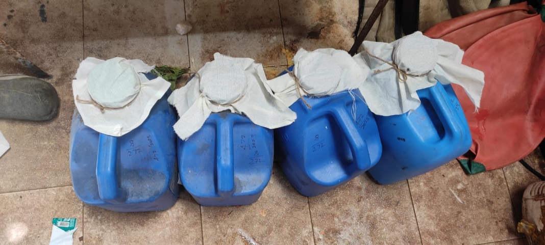 थाना प्रभारी पनागर श्री रीतेश पाण्डे ने बताया कि दिनंाक 19-5-23 की रात विश्वसनीय मुखबिर से सूचना मिली कि ग्राम निभैारा का साहिल केवट छत्तरपुर नहर की पुलिया के पास प्लास्टिक के 4 डिब्बा मंे कच्ची शराब रखे मोटर सायकल लिये खड़ा है सूचना पर मुखबिर के बताये स्थान पर दबिश दी गई, छत्तरपुर नहर पुलिया के पास रोड से अंदर तरफ मुखबिर के बताये हुलिये का युवक जिसके सामने प्लास्टिक के 4 डिब्बे रखे मोटर सायकल लिये खडा दिखा जो पुलिस को देखकर भागने का प्रयास किया जिसे घेराबंदी कर पकड़ा गया जिसने नाम पता पूछने पर अपना नाम साहिल केवट उम्र 19 वर्ष निवासी निभौरा बताया, जिसे सूचना से अवगत कराते हुये तलाशी लेने चारों प्लास्टिक के डिब्बों में 60 लीटर कच्ची शराब होना पायी गयी जिसे मय मोटर सायकल क्रमांक एमपी 20 एम एस 1498 के जप्त करते हुये आरोपी के विरूद्ध धारा 34(2) आबकारी एक्ट के तहत कार्यवाही की गई।