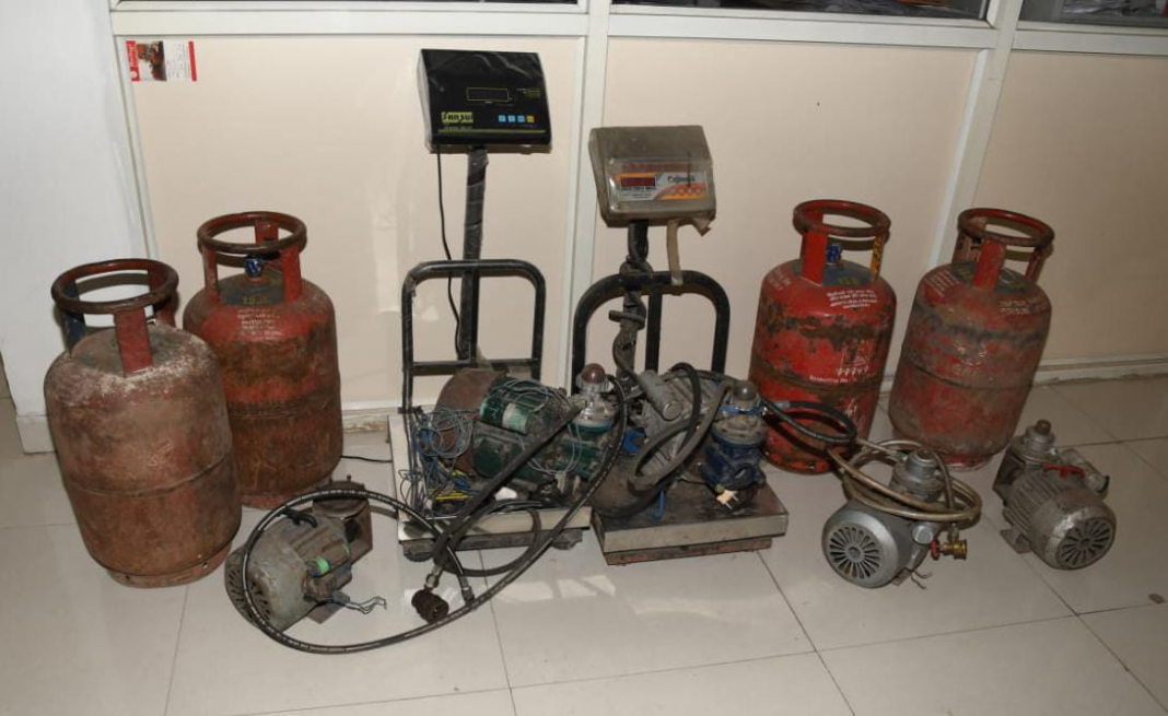 थाना प्रभारी ओमती श्री वीरेन्द्र सिंह पवार ने बताया कि आज दिनंाक 3-5-23 की दोपहर में विश्वसनीय मुखबिर से सूचना मिली कि नागरथ चौक के पास पर्यटन तिराहा वाली रोड में वायें तरफ घरेलू गैस सिलेण्डर में पाईप लगाकर सवारी आटो में गैस भरी जा रही है सूचना पर मुखबिर के बताये स्थान पर दबिश दी गई नागरथ चौराहे के पास गुरूकृपा आटो पाटर्स दुकान के बाजू में घरेलू गैस सिलेण्डर में पाईप लगाकर सवारी आटो में गैस भरी जा रही थी, पुलिस को देखकर आटो वाला भाग गया घेराबंदी कर आटो में गैस भरने वाले को पकड़ा गया जिसने नाम पता पूछने पर अपना नाम मुकुल अहिरवार उम्र 24 वर्ष निवासी कब्रिस्तान के पास बिलहरी बताया, जिसके कब्जे से एचपी कम्पनी के 4 गैस सिलेण्डर जिसमें 2 भरे तथा 2 अधभरे हैं, 2 इलेक्ट्रानिक तौल कांटे, 5 नग इलेक्ट्रिक मोटर जिसमें तीन मोटर में दोनों तरफ पाईप लगें है जप्त करते हुये आरोपी के विरूद्ध धारा 285 भादवि तथा 3, 7 ईसी एक्ट के तहत कार्यवाही की गई।