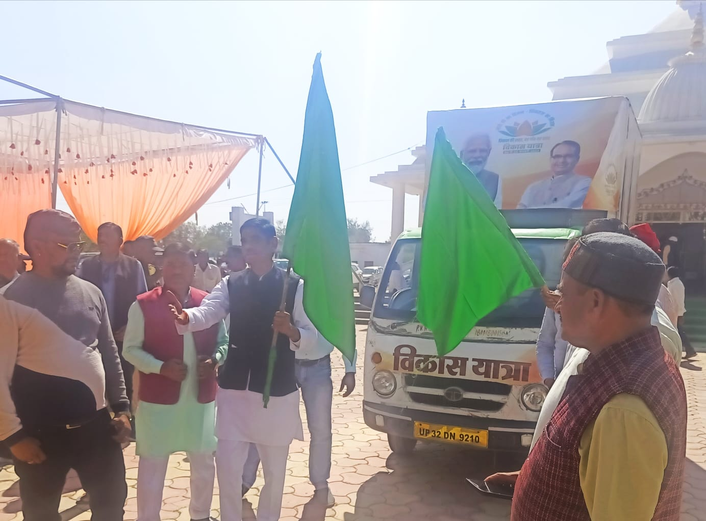 मैहर- विकास यात्रा के रथ को हरी झंडी दिखाकर पूर्व विधायक मोतीलाल तिवारी, प्रदेश कार्यसमिति सदस्य श्रीकांत चतुर्वेदी ने रवाना किया इस कार्यक्रम में पूर्व मंडल अध्यक्ष सत्यभान पटेल किसान मोर्चा के जिला उपाध्यक्ष राजा पांडेय विकाश तिवारी एवम अन्य लोग उपस्थित रहे.