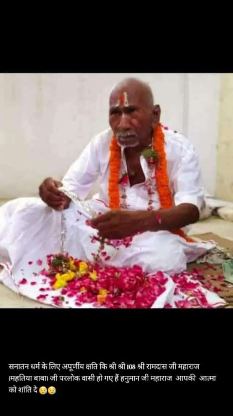 तराई अंचल के त्यौथर विधानसभा के घटेहा गांव में स्थित बजरंगबली के मन्दिर में रहने वाले सिद्ध पुरुष श्री श्री 108 रामदास जी महराज महातिया बाबा आज परलोक वासी हो गए हैं वे लगभग 106 वर्ष के बताए जा रहे है आज शाम को 5 बजे उन्होंने अन्तिम सास ली जैसे ही लोगो को इस बात की खबर लगी पूरे क्षेत्र दुख के सागर में डूब गया वही उनके भक्त अंतिम दर्शन के लिए आश्रम पहुंच रहें हैं कहा जाता हैं कि महातियां बाबा का यह पावन धाम में पहुंचने मात्र से भक्तो के सारे कष्ट दूर हो जाते है वही महतिया बाबा के परलोक वासी होने से उनके चाहने वाले काफी आहत है। वही सिद्ध पुरुष महातिया बाबा के परलोकवासी होने की खबर सुनकर लाखो भक्त है जो गहरे दुख में डूब गए हैं.